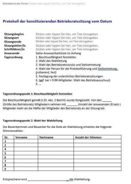 Musterprotokoll für die konstituierende Sitzung des Wahlvorstands nach WahlO §11. Praktische Vorlage zur ordnungsgemäßen Erledigung aller Aufgaben und Einbindung von Wahlhelfern.